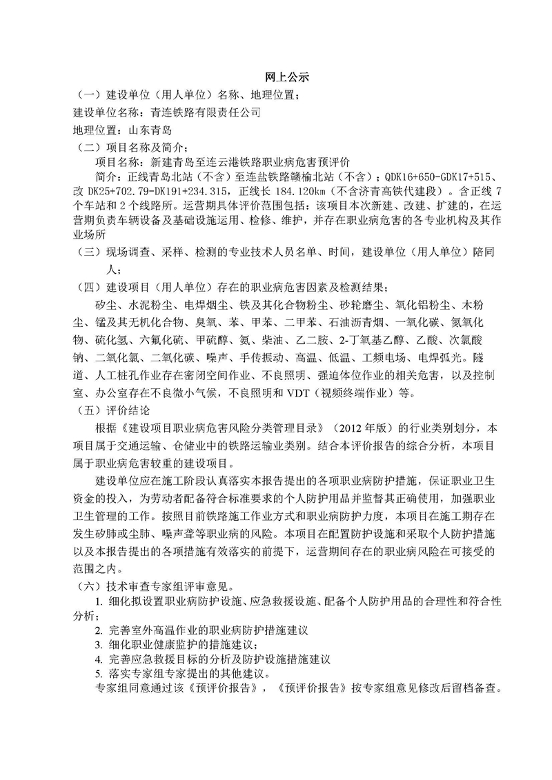 新建青岛至连云港铁路建设项目职业病危害预评价