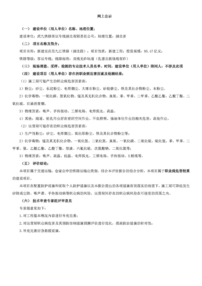 新建安庆至九江铁路(湖北段)项目职业病危害预评价