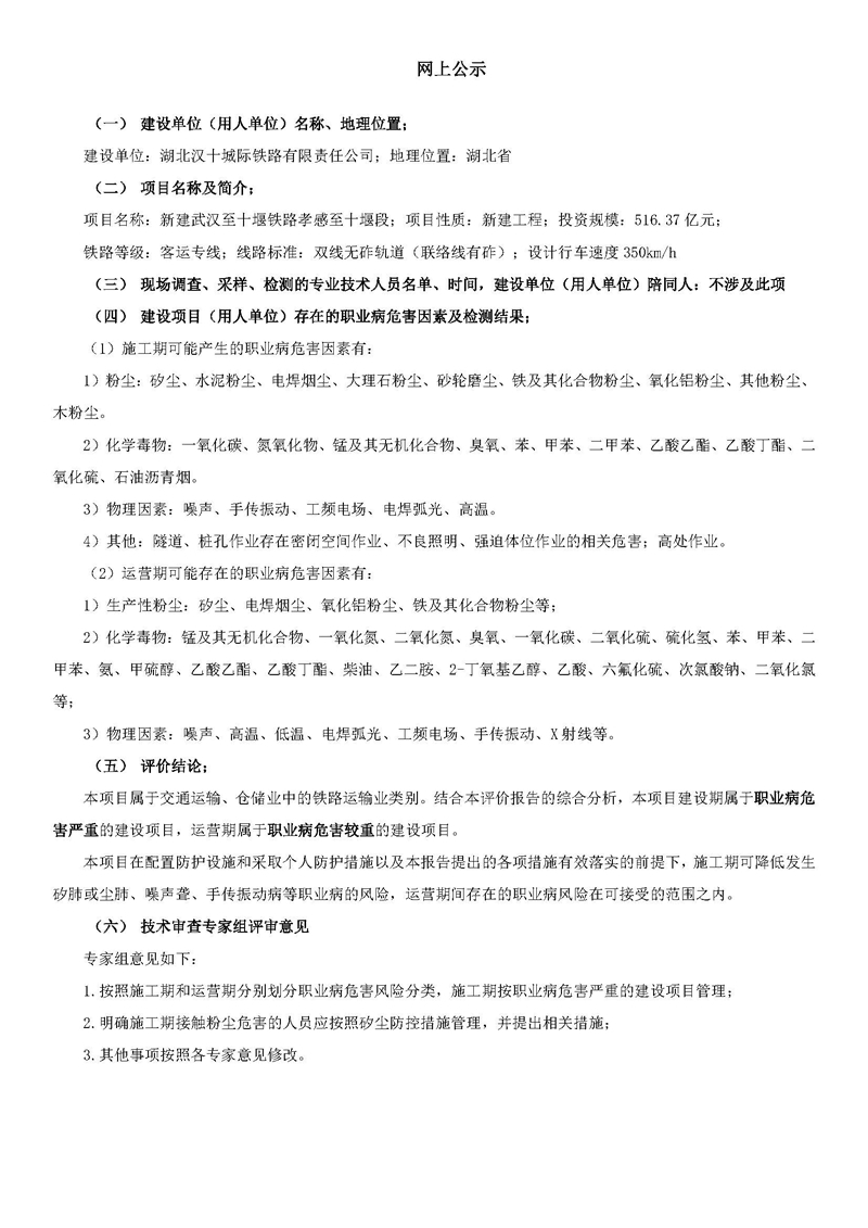 武汉至十堰铁路孝感至十堰段职业病危害预评价