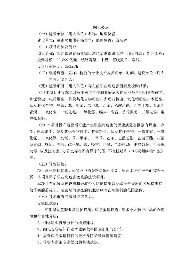 董家口疏港铁路职业病危害预评价