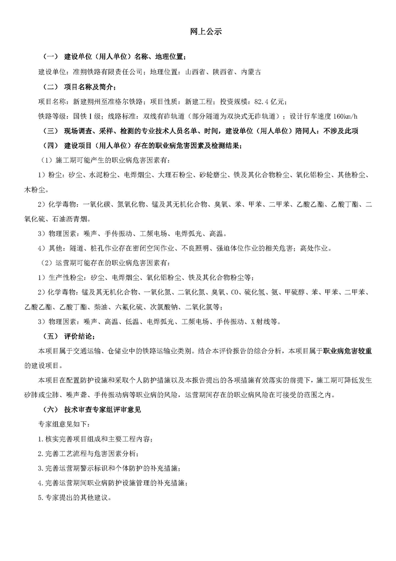 新建朔州至准格尔铁路工程职业病危害预评价