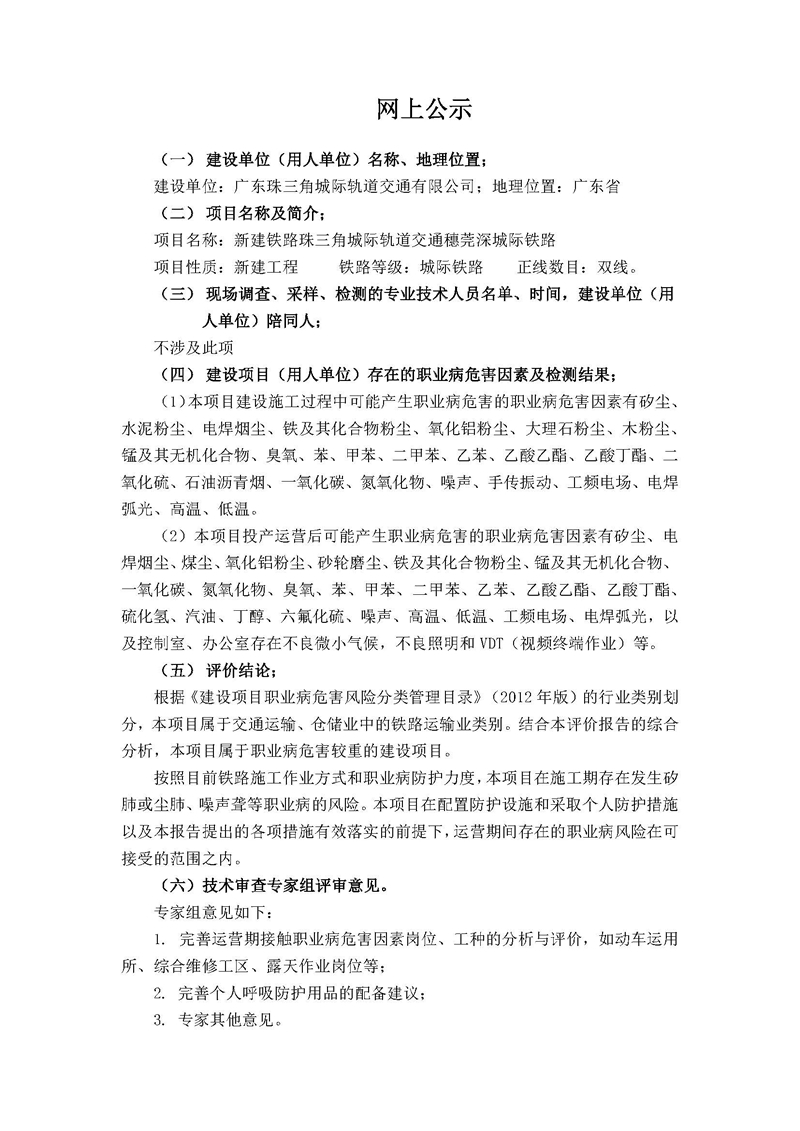 穗莞深城际职业病危害预评价