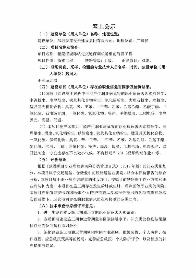 穗莞深城际轨道交通深圳机场至前海段工程职业病危害预评价