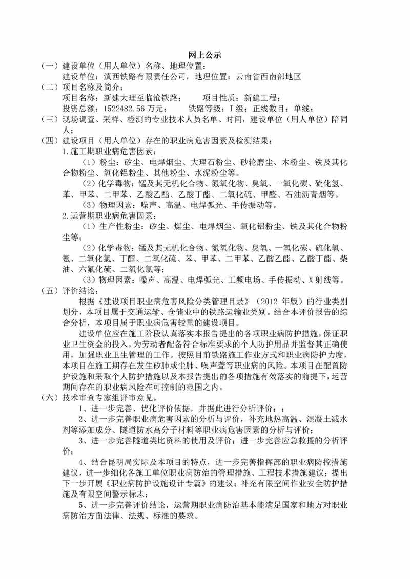 大临铁路职业病危害预评价