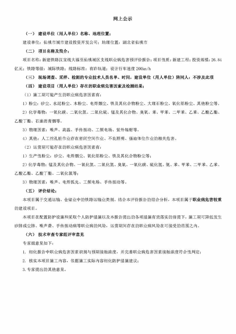 新建汉宜线大福至仙桃城区支线铁路职业病危害预评价