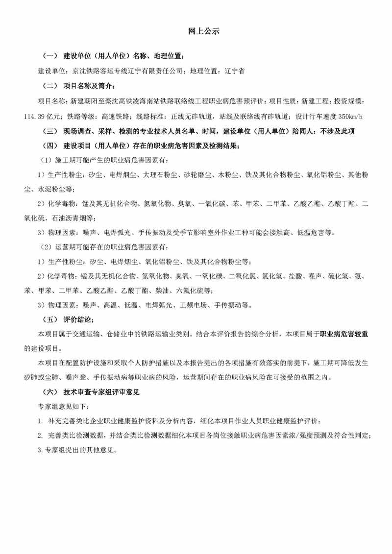 朝阳至凌海客运专线职业病危害预评价