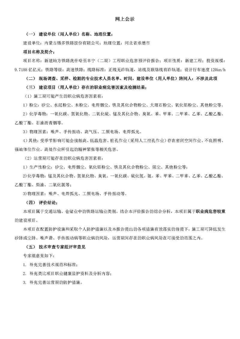 新建地方铁路虎什哈至丰宁(二期)工程职业病危害预评价