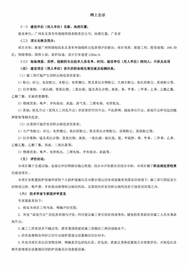 新建广州铁路枢纽东北货车外绕线职业病危害预评价