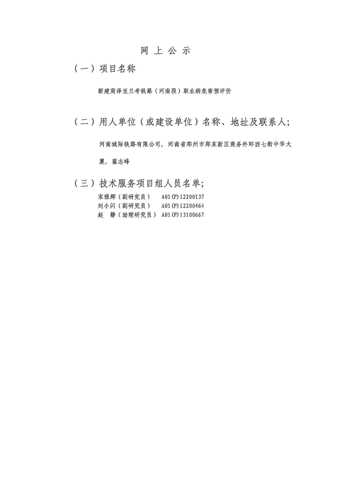 新建菏泽至兰考铁路(河南段)职业病危害预评价