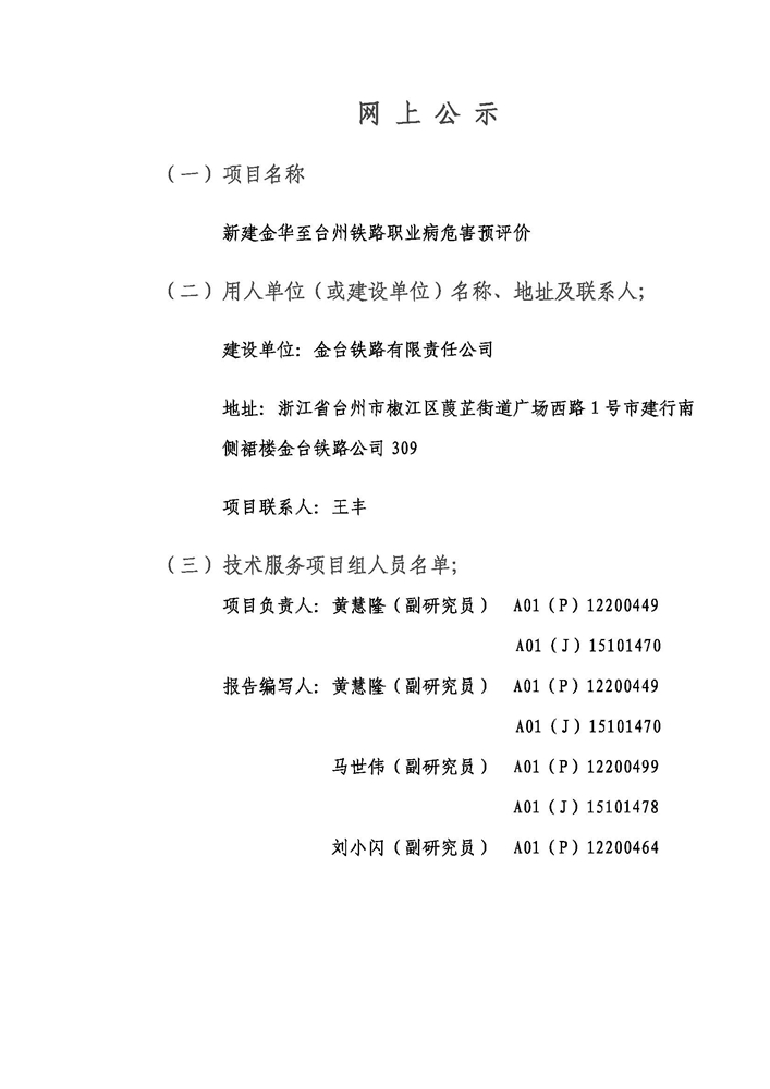 金台铁路职业病危害预评价