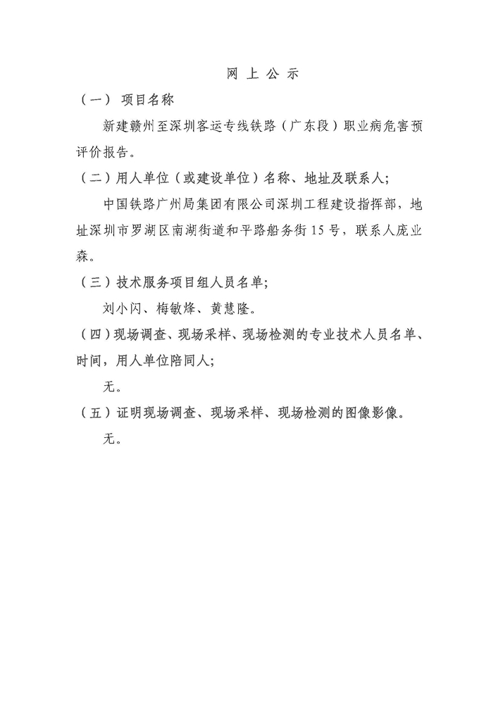 赣深铁路(广东段)职业病危害预评价