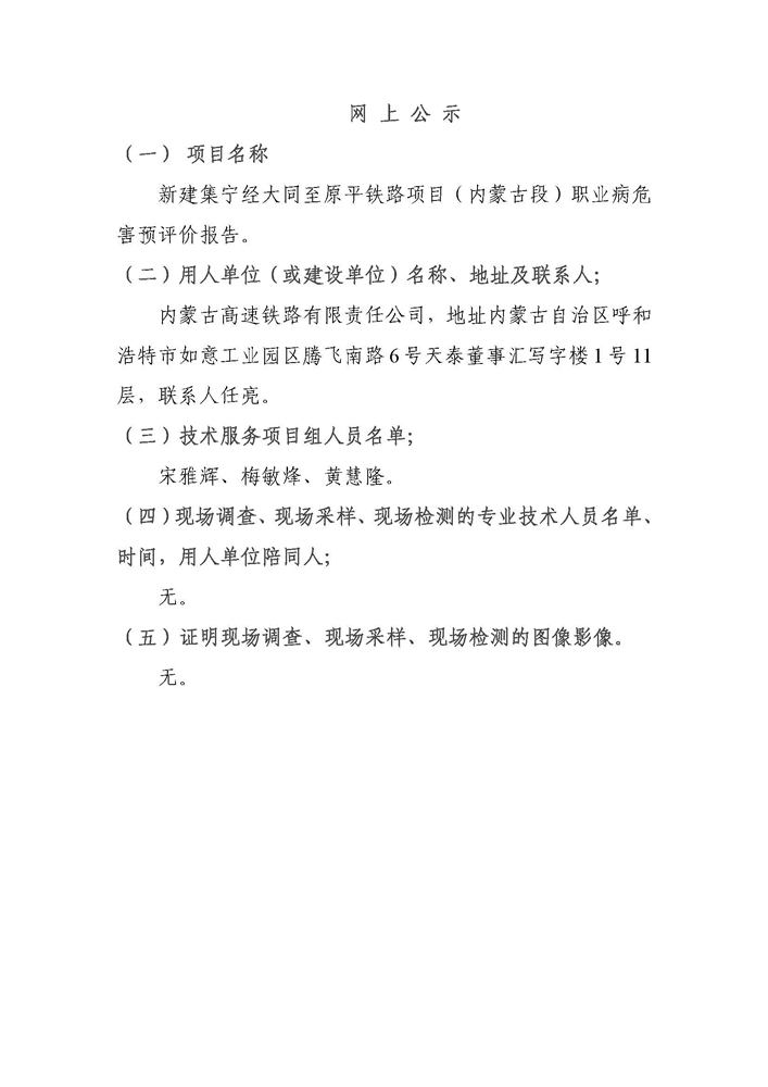新建集宁经大同至原平铁路项目(内蒙古段)职业病危害预评价