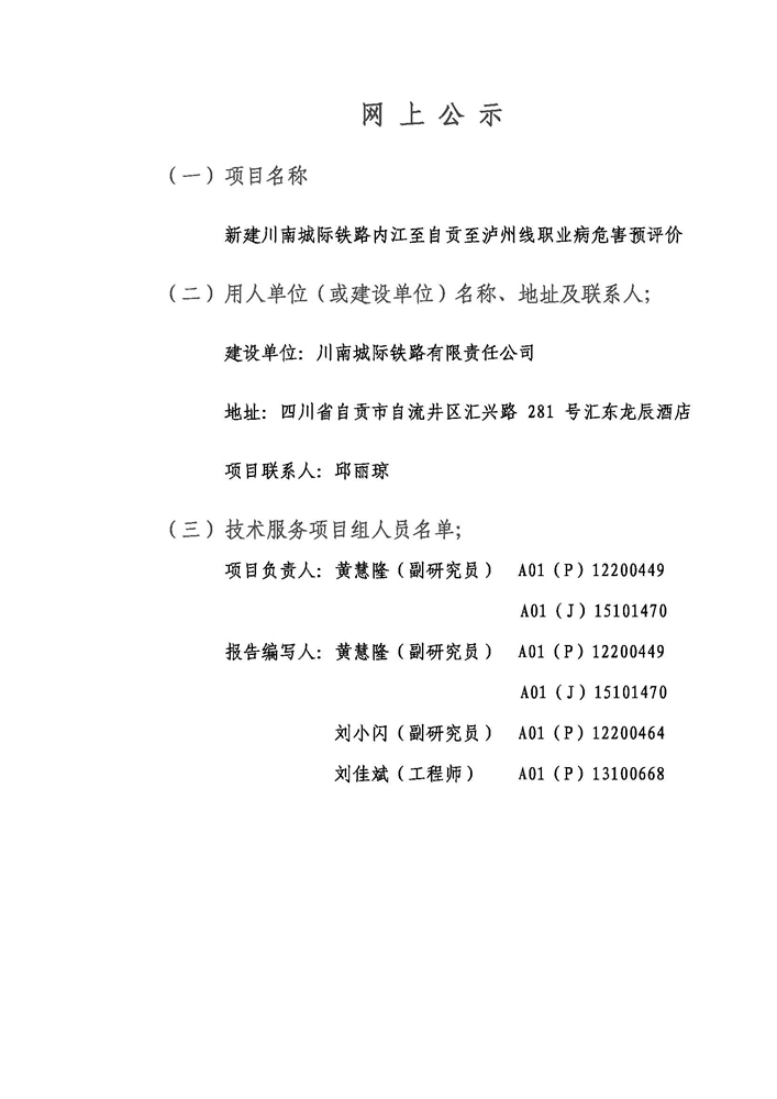 新建川南城际铁路内江至自贡至泸州线职业病危害预评价