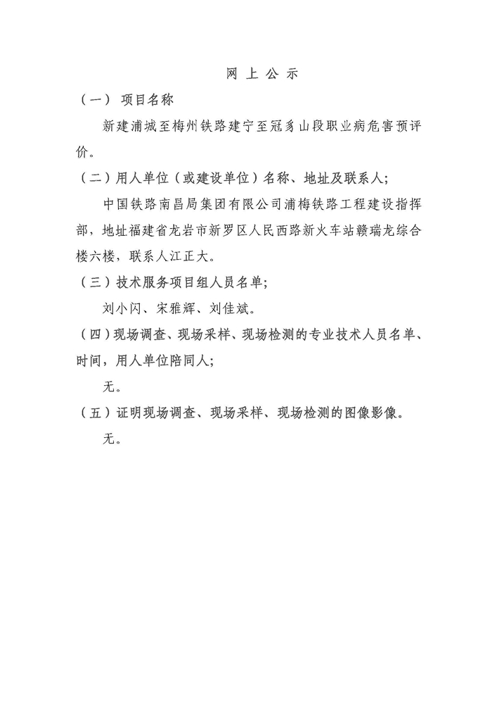 新建浦城至梅州铁路建宁至冠豸山段职业病危害预评价