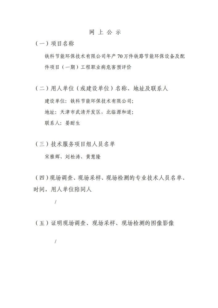 铁科节能环保技术有限公司年产70万件铁路节能环保设备及配件项目(一期)工程职业病危害预评价