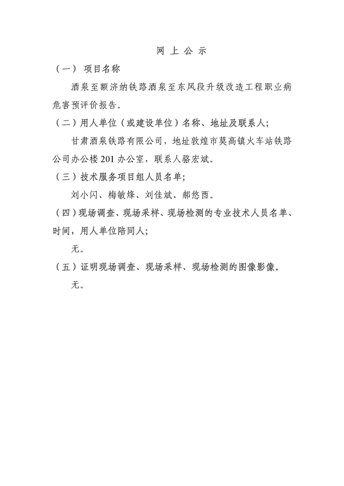 酒泉至额济纳铁路酒泉至东风段升级改造工程职业病危害预评价
