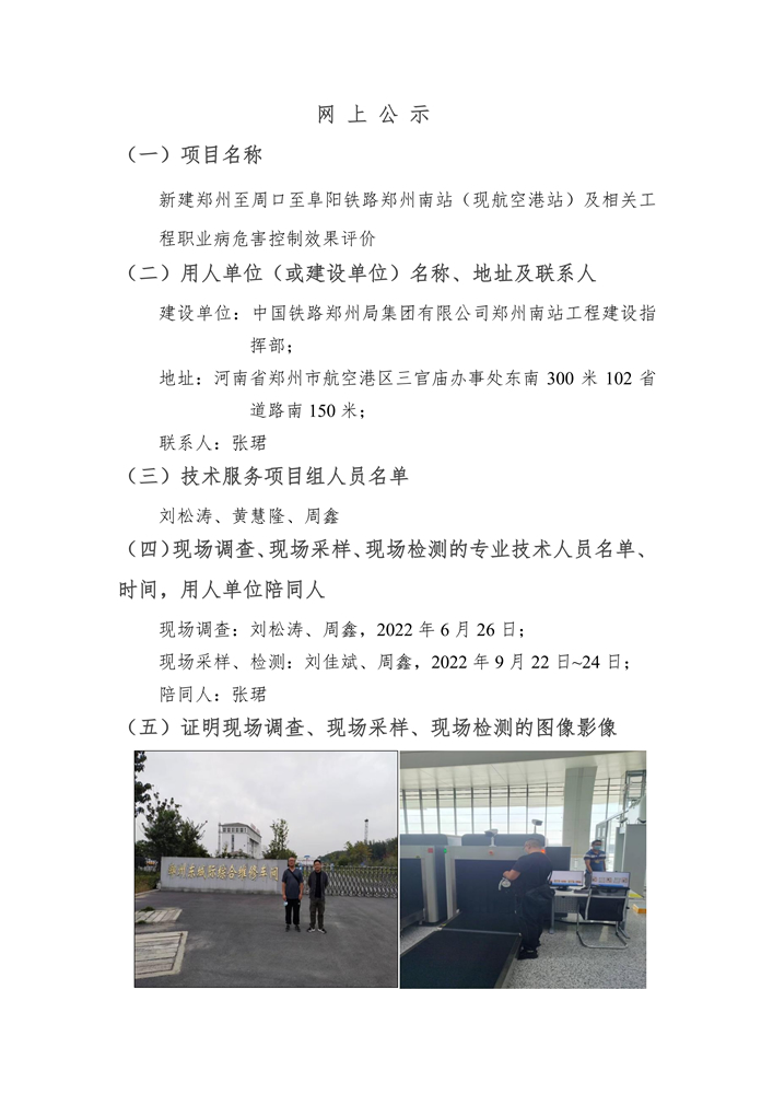新建郑州至周口至阜阳铁路郑州南站及相关工程职业病危害控制效果评价