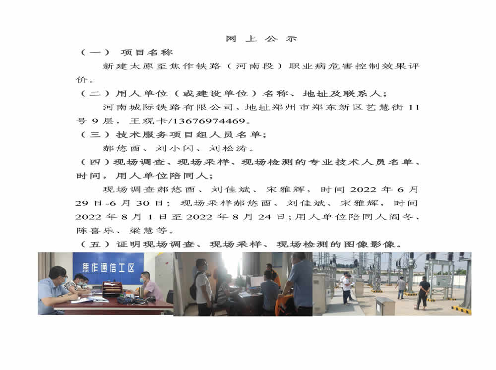 新建太原至焦作铁路(河南段)职业病危害控制效果评价