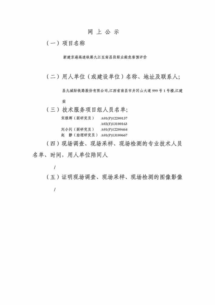 新建京港高速铁路九江至南昌段职业病危害预评价
