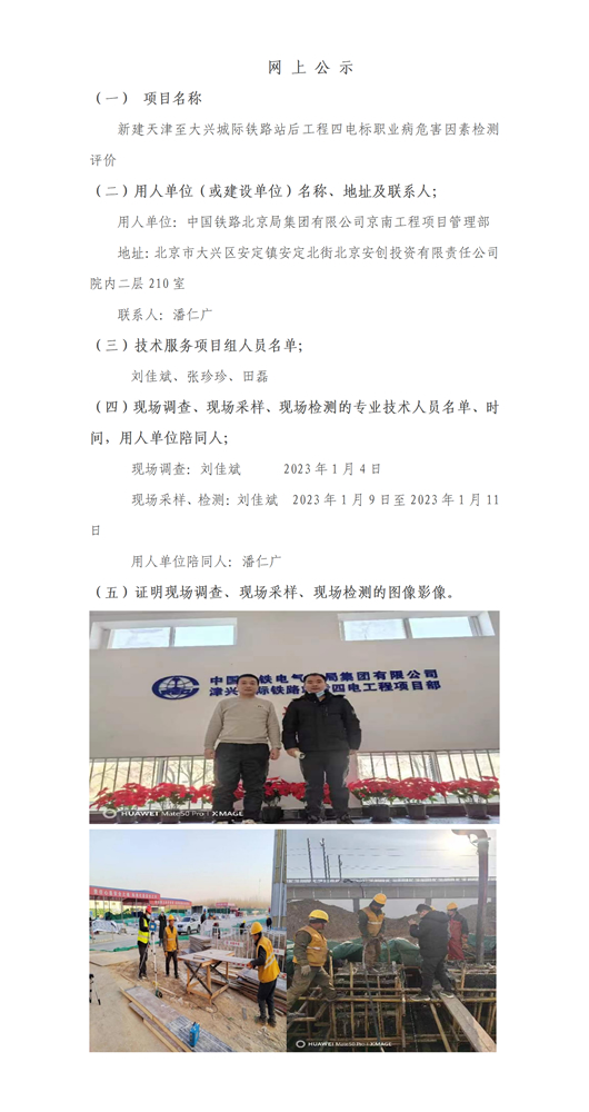 新建天津至大兴城际铁路站后工程四电标职业病危害因素检测评价