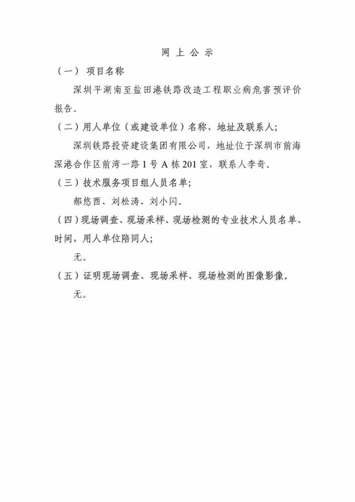 深圳平湖南至盐田港铁路改造工程职业病危害预评价