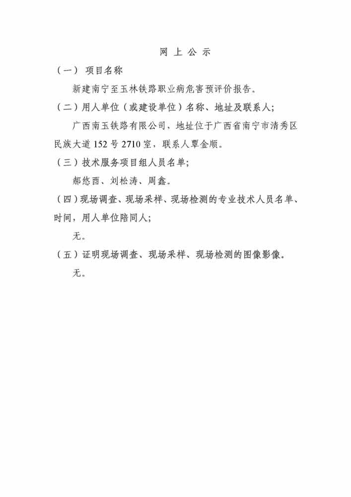 新建南宁至玉林铁路职业病危害预评价