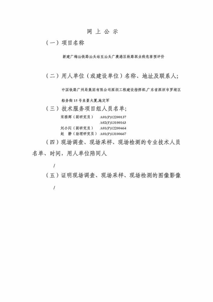 新建广梅汕铁路汕头站至汕头广澳港区铁路职业病危害预评价
