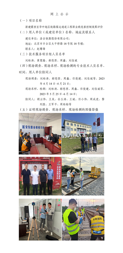新建蒙西至华中地区铁路煤运通道工程职业病危害控制效果评价