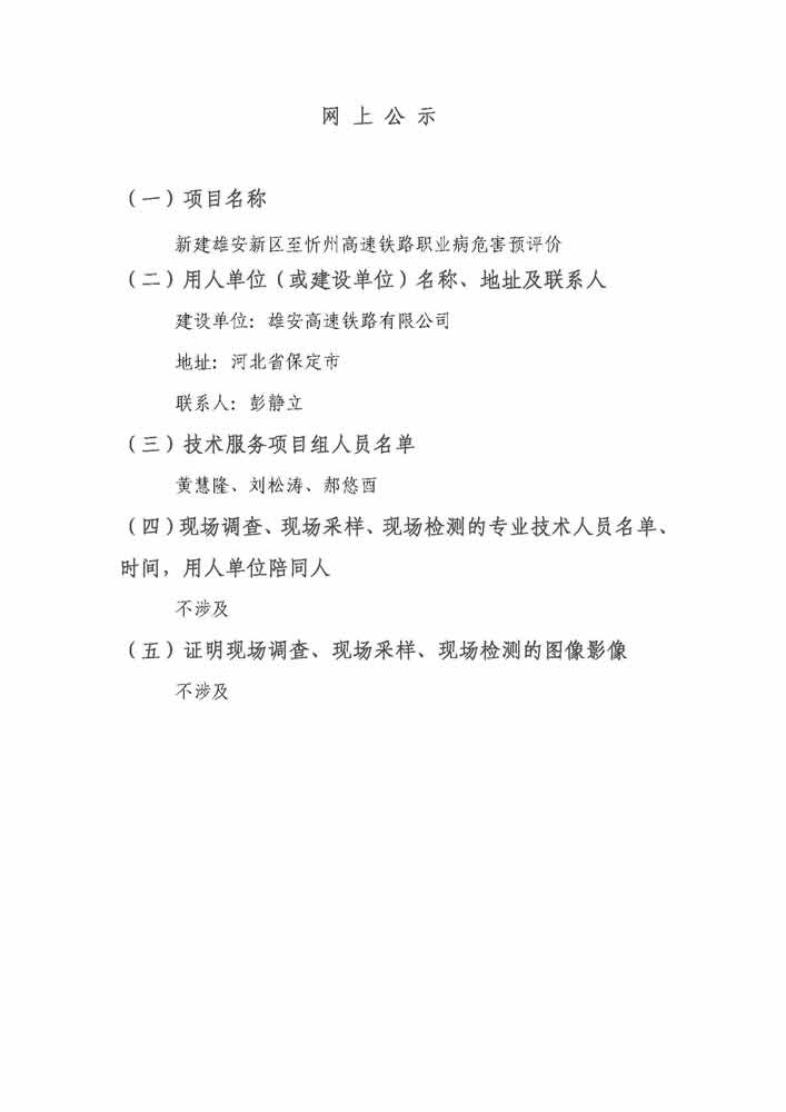 新建雄安新区至忻州高速铁路职业病危害预评价