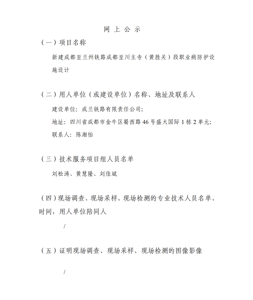 新建成都至兰州铁路成都至川主寺(黄胜关)段职业病防护设施设计