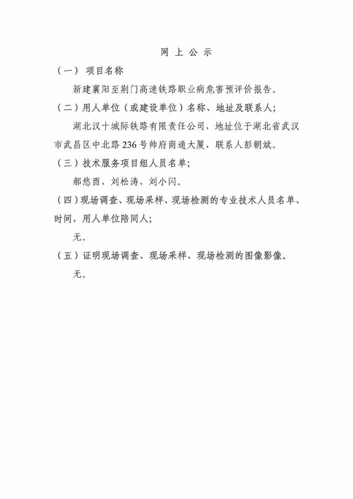 新建襄阳至荆门高速铁路职业病危害预评价报告