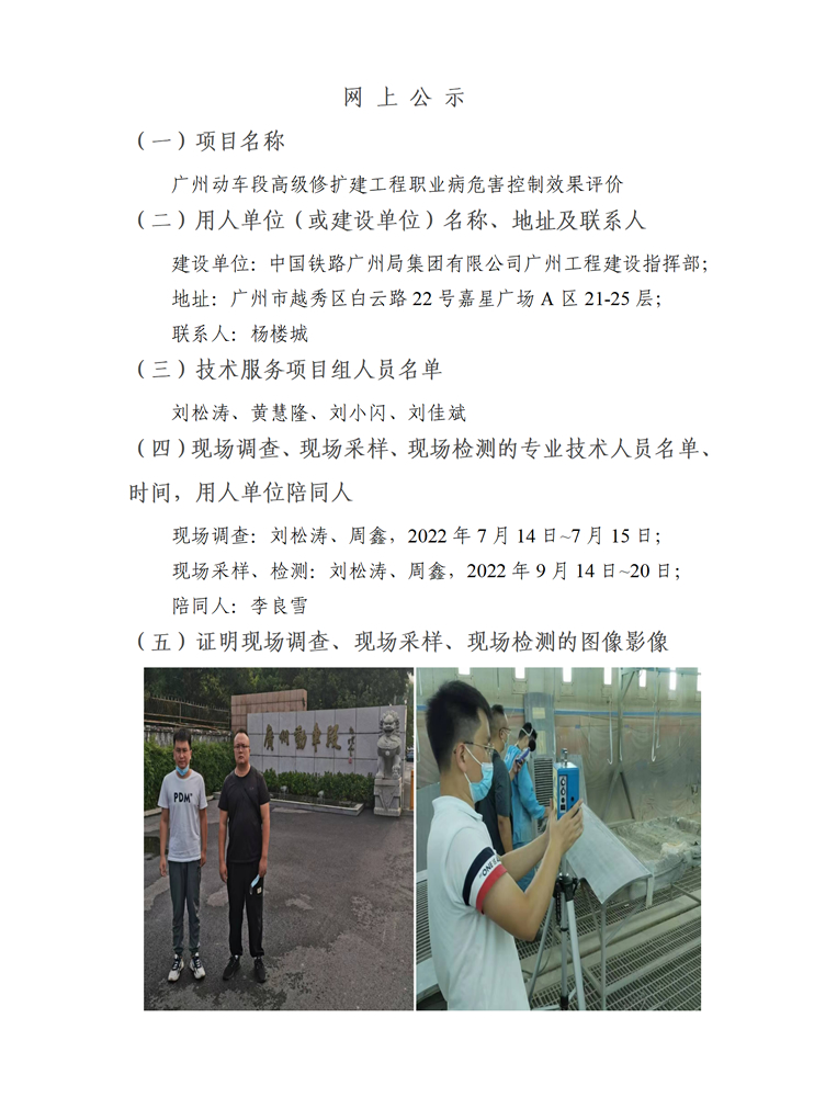 广州动车段高级修扩建工程职业病危害控制效果评价