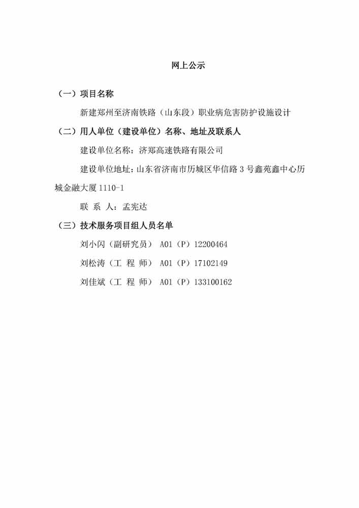 新建郑州至济南铁路(山东段)职业病防护设施设计