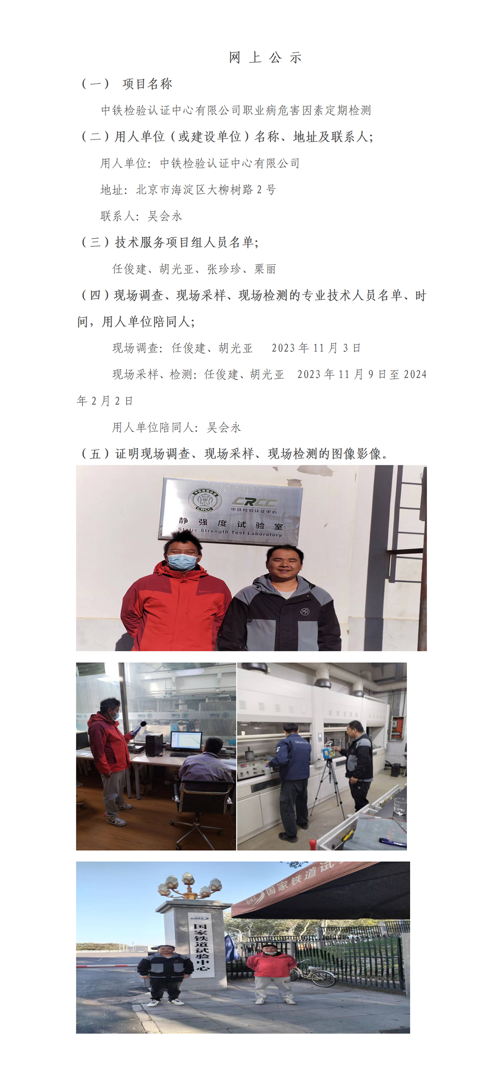 中铁检验认证中心有限公司职业病危害因素定期检测