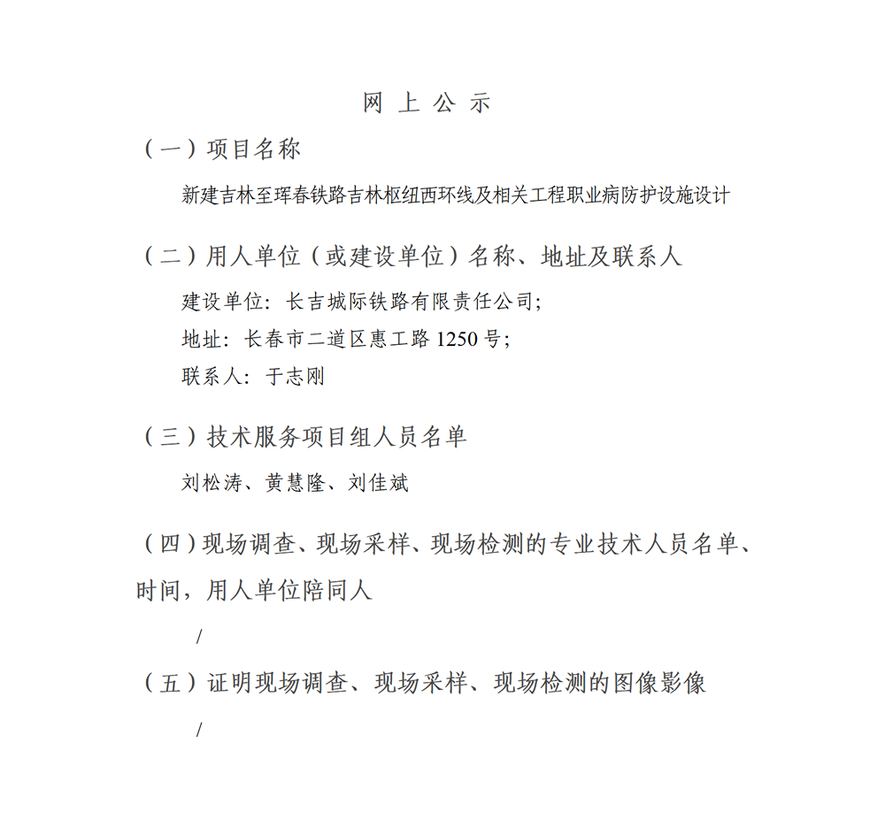 新建吉林至珲春铁路吉林枢纽西环线及相关工程职业病防护设施设计