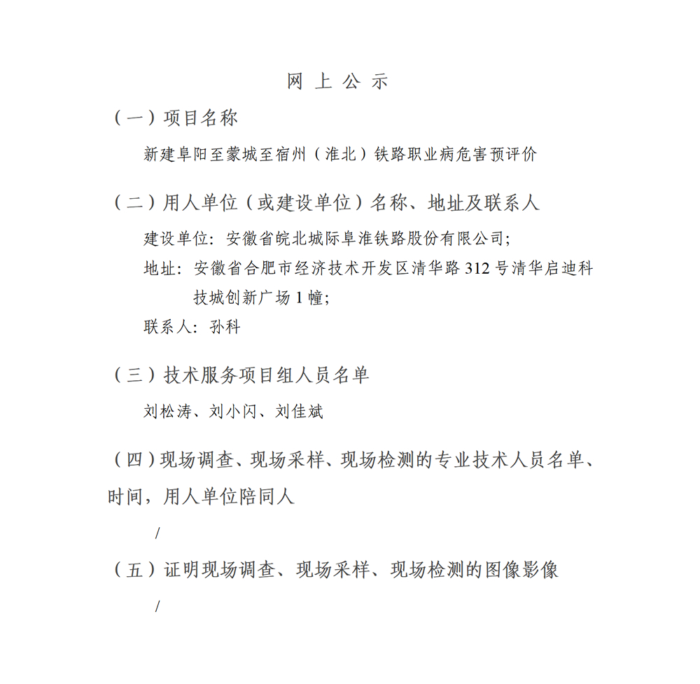 新建阜阳至蒙城至宿州(淮北)铁路职业病危害预评价