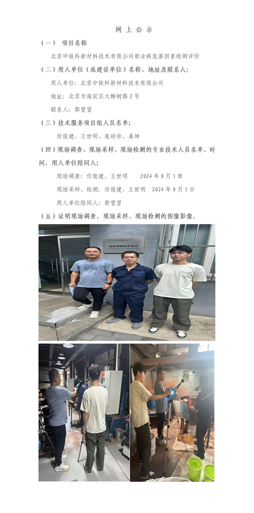 北京中铁科新材料技术有限公司职业病危害因素检测评价
