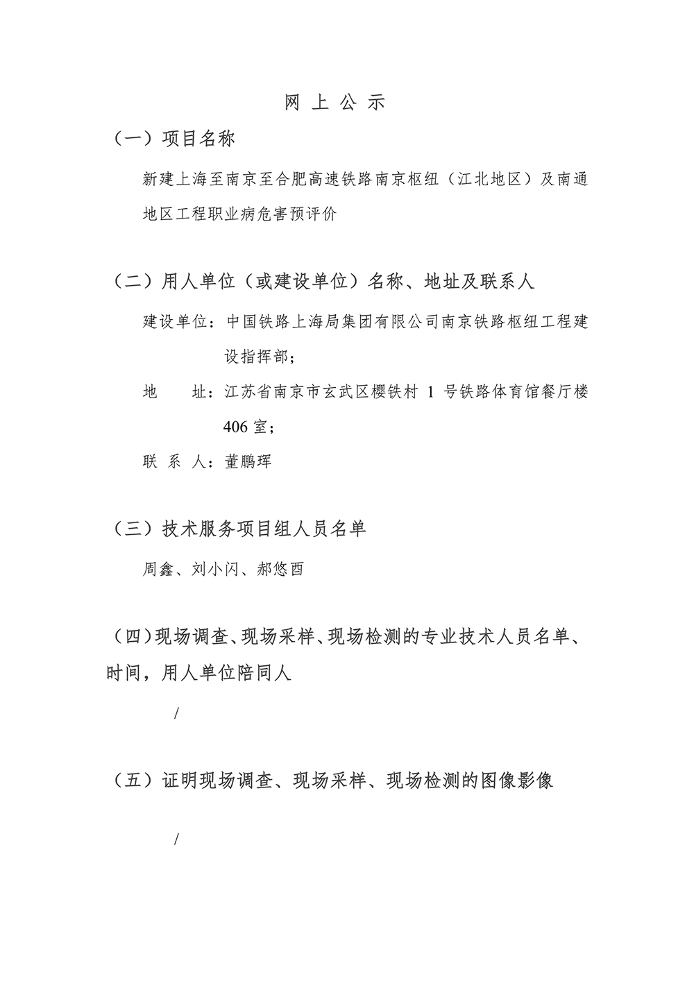 新建上海至南京至合肥高速铁路南京枢纽(江北地区)及南通地区工程职业病危害预评价