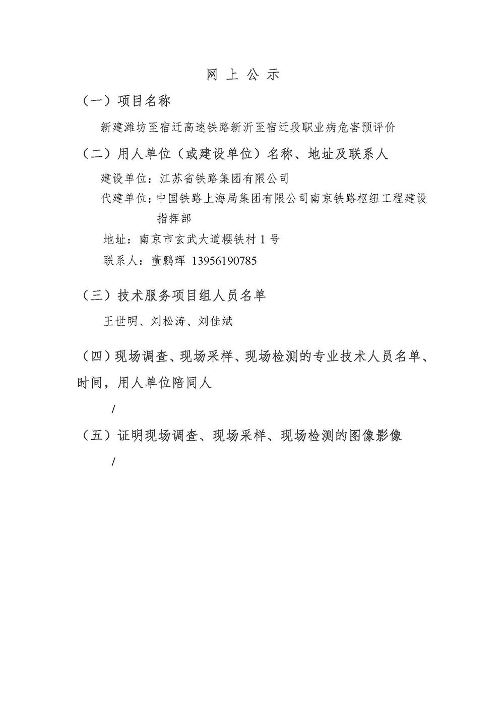 新建潍坊至宿迁高速铁路新沂至宿迁段职业病危害预评价
