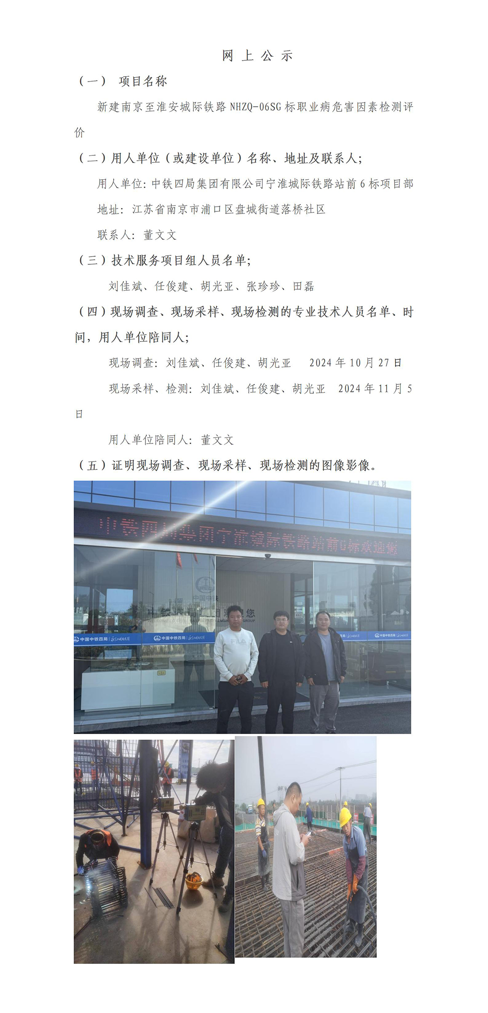 新建南京至淮安城际铁路NHZQ-06SG标职业病危害因素检测评价