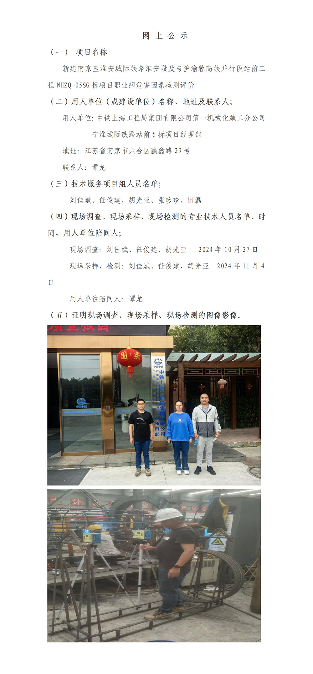 新建南京至淮安城际铁路淮安段及与沪渝蓉高铁并行段站前工程NHZQ-05SG标项目职业病危害因素检测评价