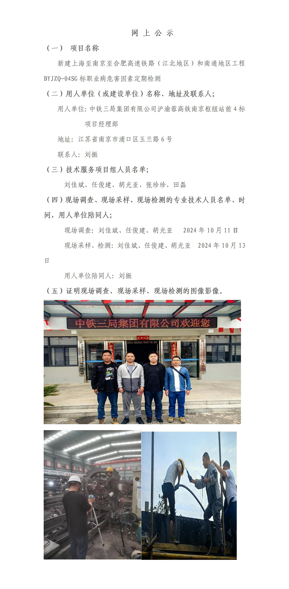 新建上海至南京至合肥高速铁路(江北地区)和南通地区工程BYJZQ-04SG标职业病危害因素定期检测