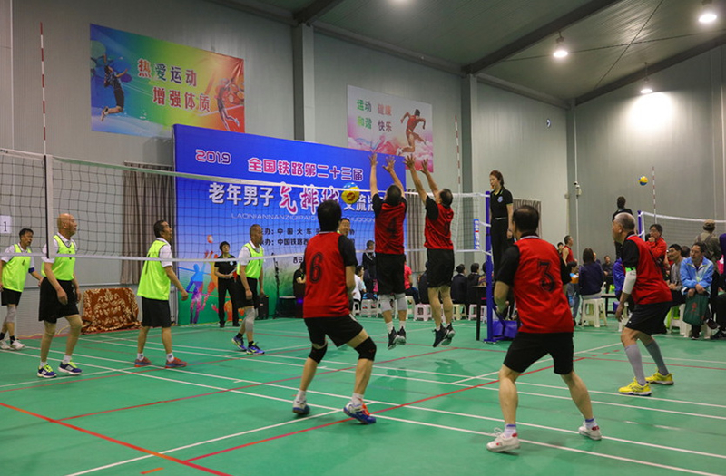 全国铁路老年男子第二十三届气排球交流活动2019年4月23~25日在西安临潼举行。中国火车头老年体协和西安铁路局集团公司老年体协主要领导出席了开闭幕式,来自全国铁路21个单位代表队参加了本届交流活动。