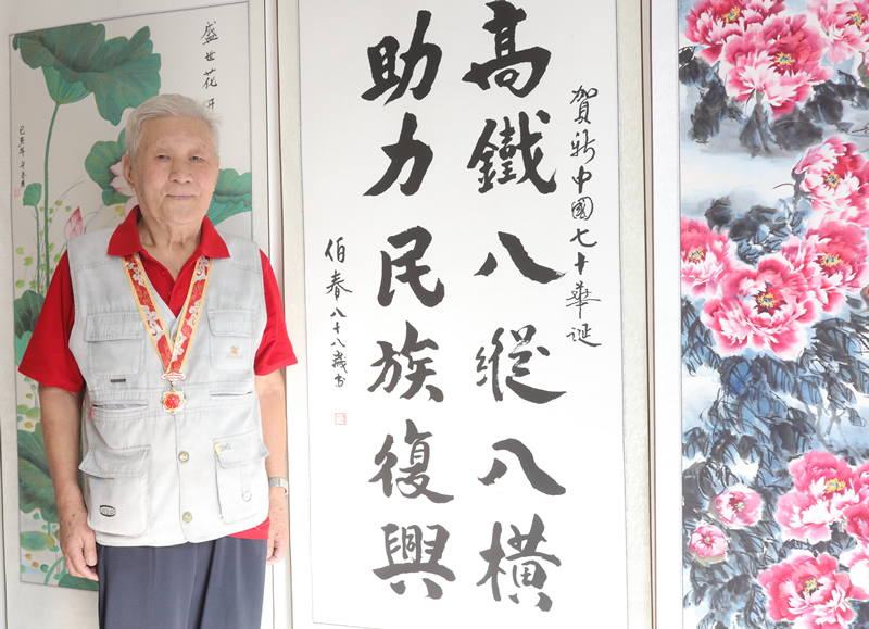 离休干部喜佩“庆祝中华人民共和国成立70周年纪念章”观展