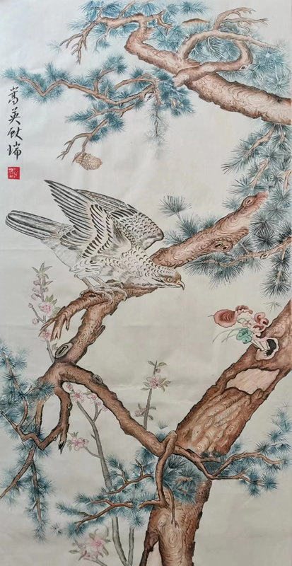 工笔画《嵩英献瑞》(仿民国画家邢一峰作品)