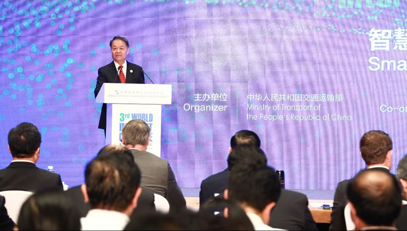 交通运输部党组书记杨传堂致开幕辞。他指出,交通出行中的每个领域、每种方式、每个环节,都在被互联网渗透、改变、再造。杨传堂号召世界各国交通运输界、互联网界的朋友加强沟通、扩大共识、深化合作,推动“互联网+”与交通运输融合发展。