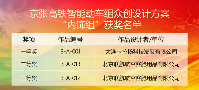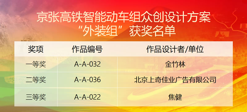 2017年8月3日,根据铁路总公司的部署安排,京张智能动车组众创设计方案征集活动正式启动。通过12306网站、铁科院集团公司网站、铁路18家新媒体等发布公告,就京张高铁智能动车组的外观涂装、车内装饰和设备设施布置、旅客服务功能需求等三方面内容面向全社会征集众创设计方案。