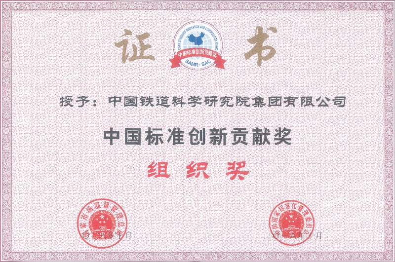 中国标准创新贡献奖是我国标准化领域的最高奖项,由国家市场监督管理总局和国家标准化管理委员会联合组织实施。铁科院集团公司荣获这一殊荣,离不开各级主管部门的长期关怀,是集团公司标准化工作团队和参与标准制修订工作的广大科研工作者共同努力的结果,是对集团公司标准化工作的再一次肯定。