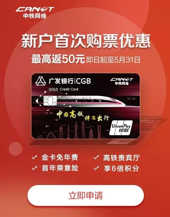 中铁网络广发联名信用卡聚焦商旅出行服务,除了提供消费累计常规积分、挂失前48小时失卡全额保障、超长达50天免息还款期等常规金融服务之外,还将周五广发分享日特色活动与12306官方购票渠道完美结合,为持卡人提供产品特色功能与新客户专享权益。
