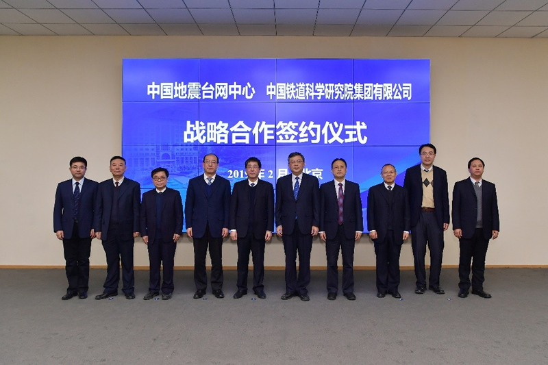 2月22日上午,中国铁道科学研究院集团有限公司(以下简称“铁科院集团公司”)与中国地震台网中心(以下简称“台网中心”)战略合作协议签约仪式在铁科院集团公司国家铁道试验中心举行。中国地震台网中心主任王海涛,党委书记、副主任孙雄,副主任刘杰,铁科院集团公司党委书记、董事长周黎,总经理叶阳升,副总经理牛道安出席签约仪式。集团公司相关部门、单位负责人参加签约仪式。